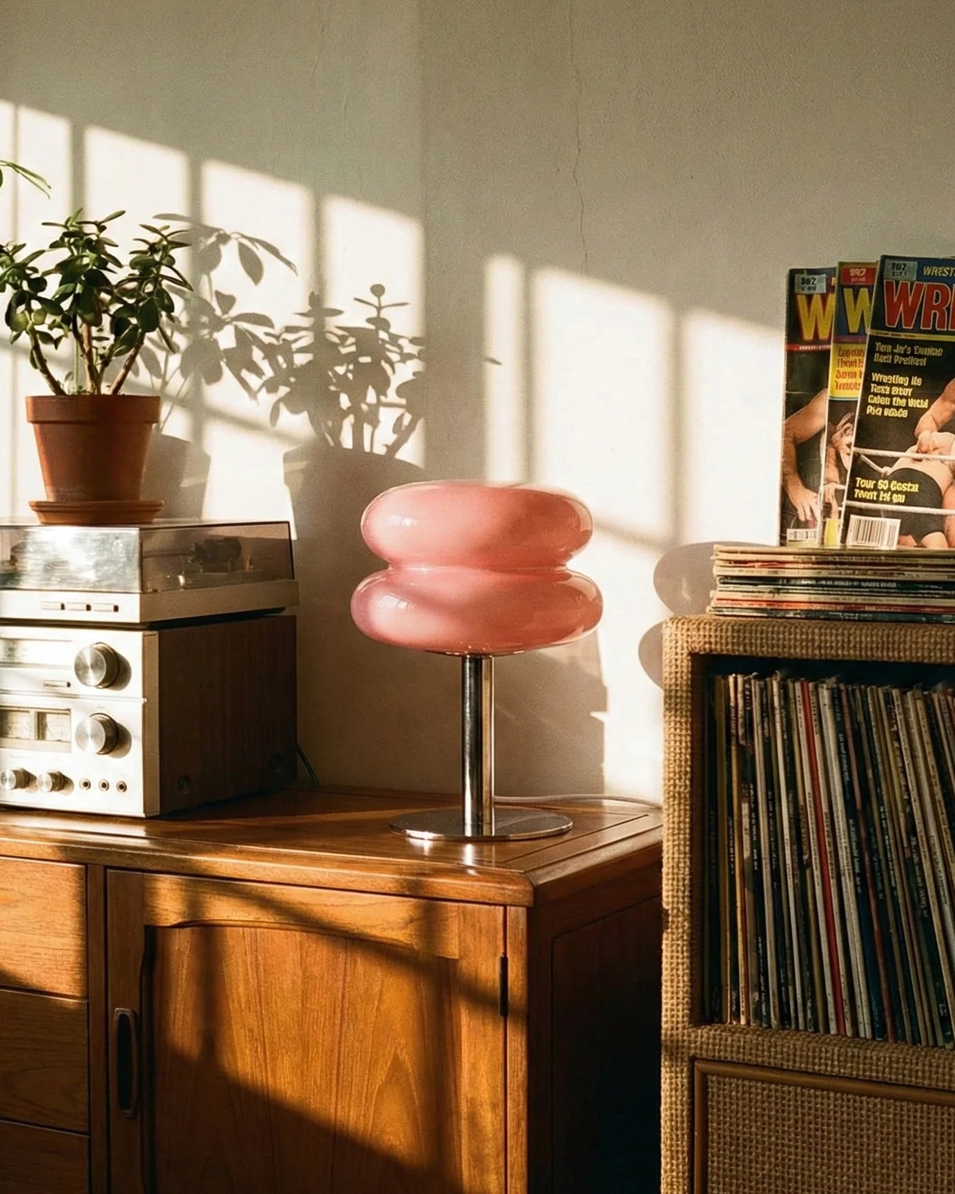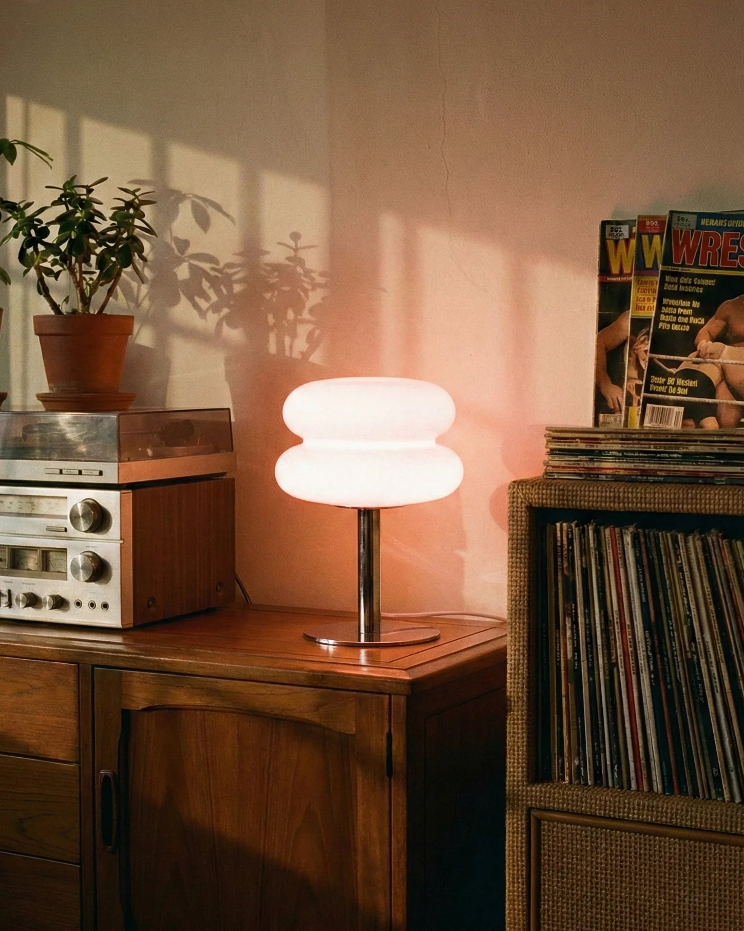 This lamp gives such a cool 70s feel. The orange color pops perfectly in my living room
